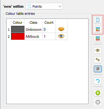 Adding new categories by saving to disk and re-loading. Circled buttons are (top) save and (bottom) load.¶