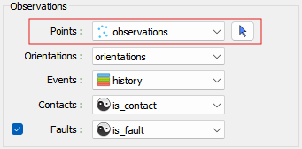 The observations object must contain data for orientations, contacts, faults, and history.