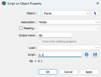 Orientation data are provided by azimuth and dip channels collected into either a strike and dip or dip direction and dip group. Users can create the azimuth and dip channels from the script menu by providing a float value.