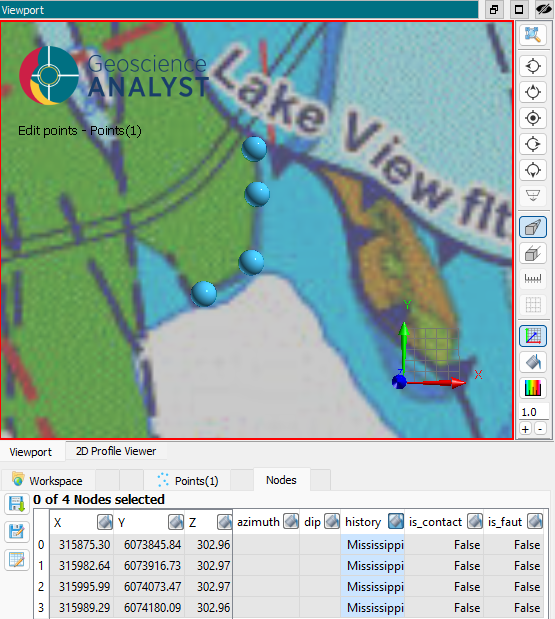 Before running gempy-drivers on this data, the user will have to provide at least one orientation, and set at least one point as a contact. If run by mistake, gempy-drivers will fail to run while indicating that it’s missing both a contact point for the Mississippi surface and orientation for the structural group.¶