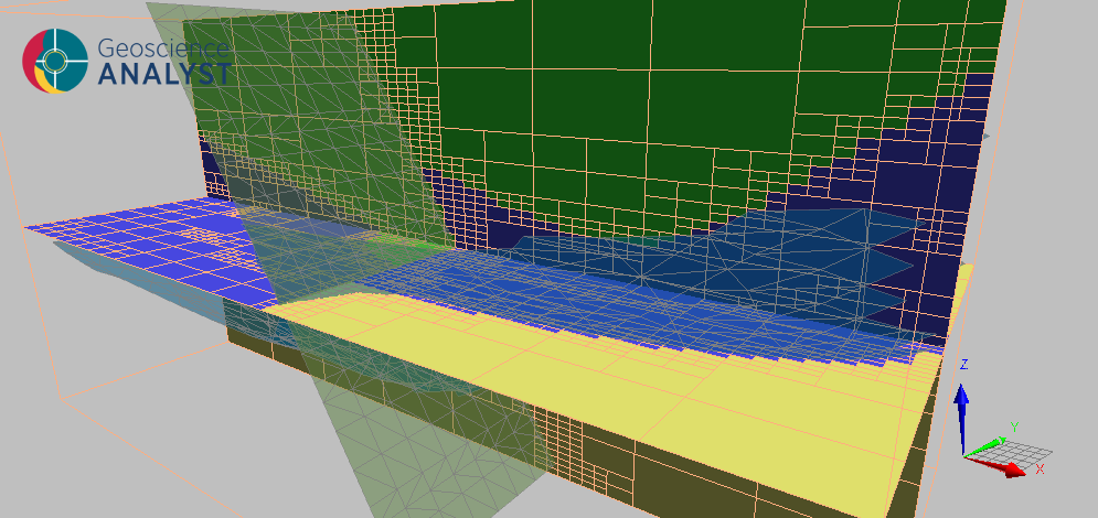 The main artefact of a gempy-drivers run is a geological model defined inside a mesh. The mesh may be optionally provided as a BlockModel or Octree object. If the mesh is not provided, the model is returned inside the Octree mesh internally generated by GemPy. This mesh has the advantage of containing refinement along the implicit modelling surfaces, and is a good choice for initial modelling attempts where efficiency is a priority.