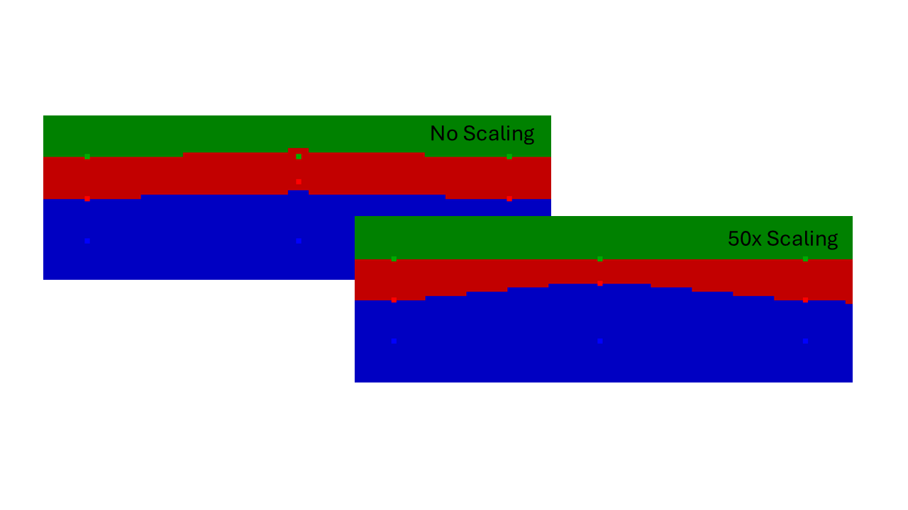 The scale parameters can be useful in cases where the observations are anisotropically distributed. For example, if the data are contained in drillholes that are kilometers apart, but the layer markers are only meters apart. In this scenario, scaling the data vertically proportional to the aspect ratio of the drillhole spacing to the layer thickness allows the scalar range parameter to apply in all dimensions equally and can greatly improve results.