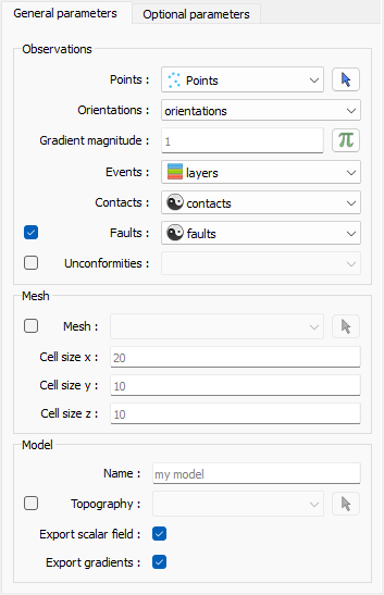 There are a few options available to control the implicit modelling process. These options are in the optional parameters tab of the ui.json interface and are described below.